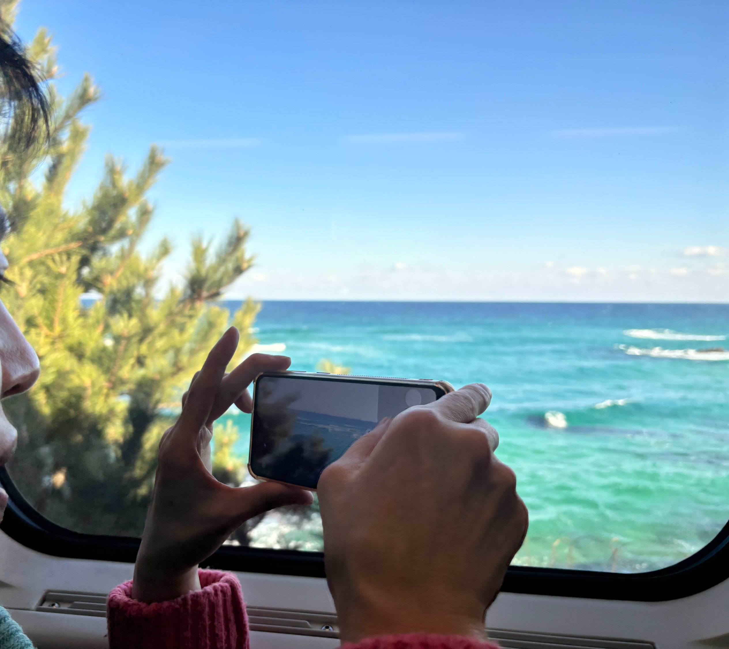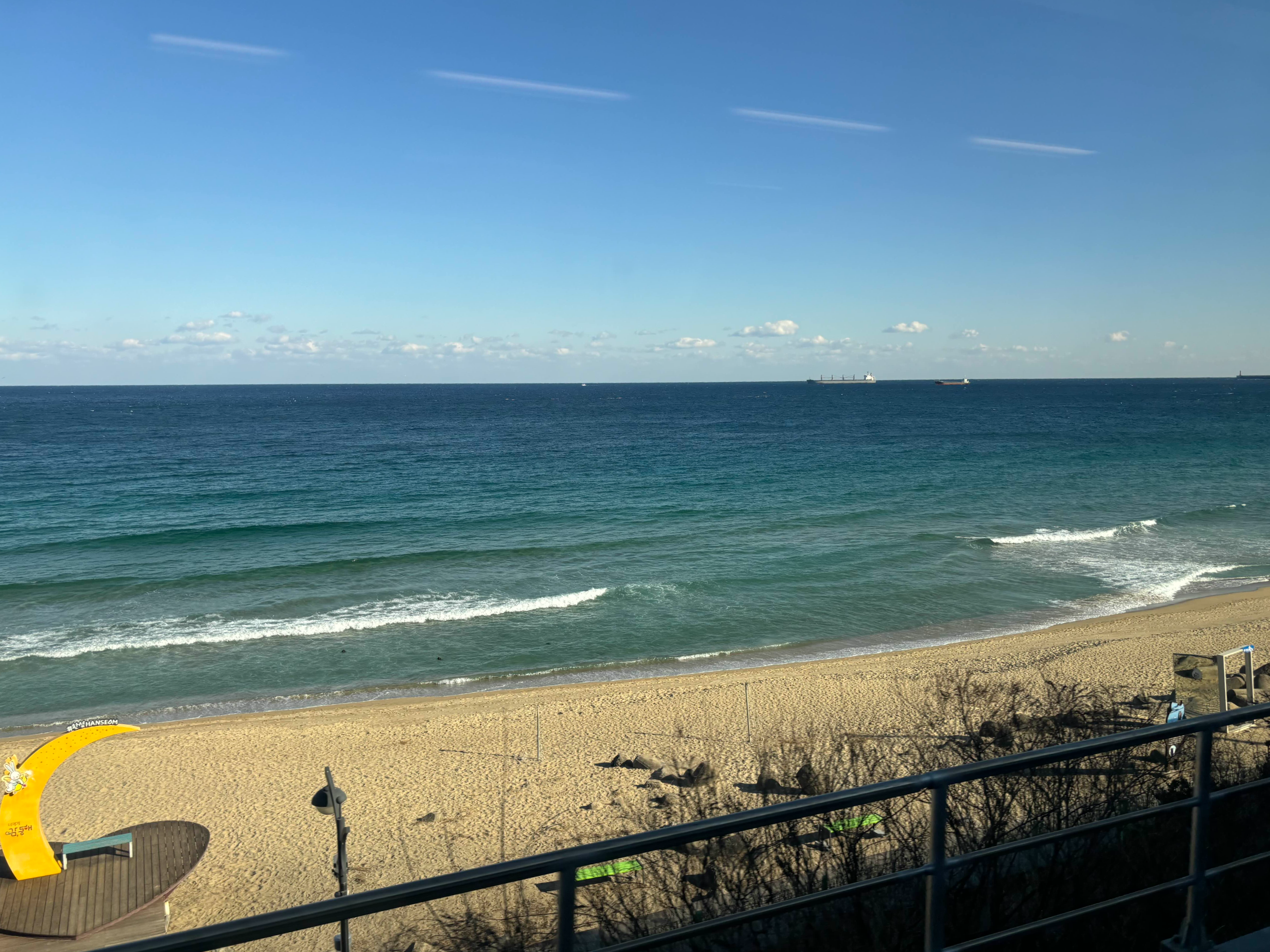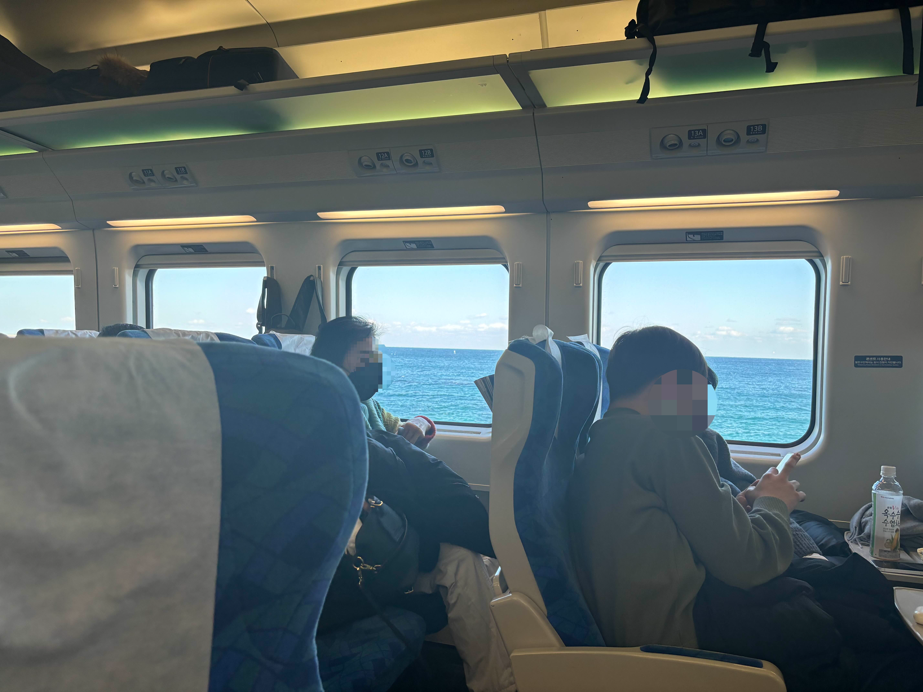 지나가는 바다마다 느낌도 색도 다르다. 바위의 유무에 따라 파도 소리도 다르다. 속이 뻥 뚫리는 바다의 근본, 동해바다가 보이는 열차 KTX 이음 동해행이었다. 솔직히 바다열차를 따로 탈 필요가 없을 정도다.