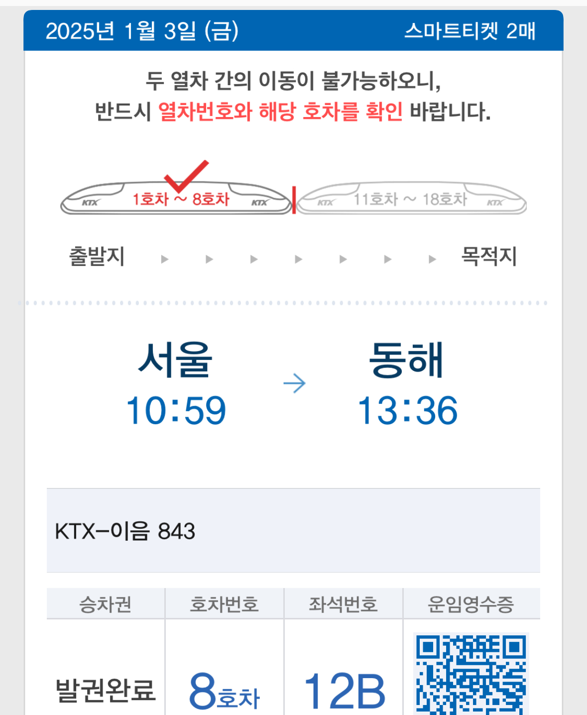 KTX 이음 서울 <->동해 열차 탄 후기, 행선지 확인 필수!