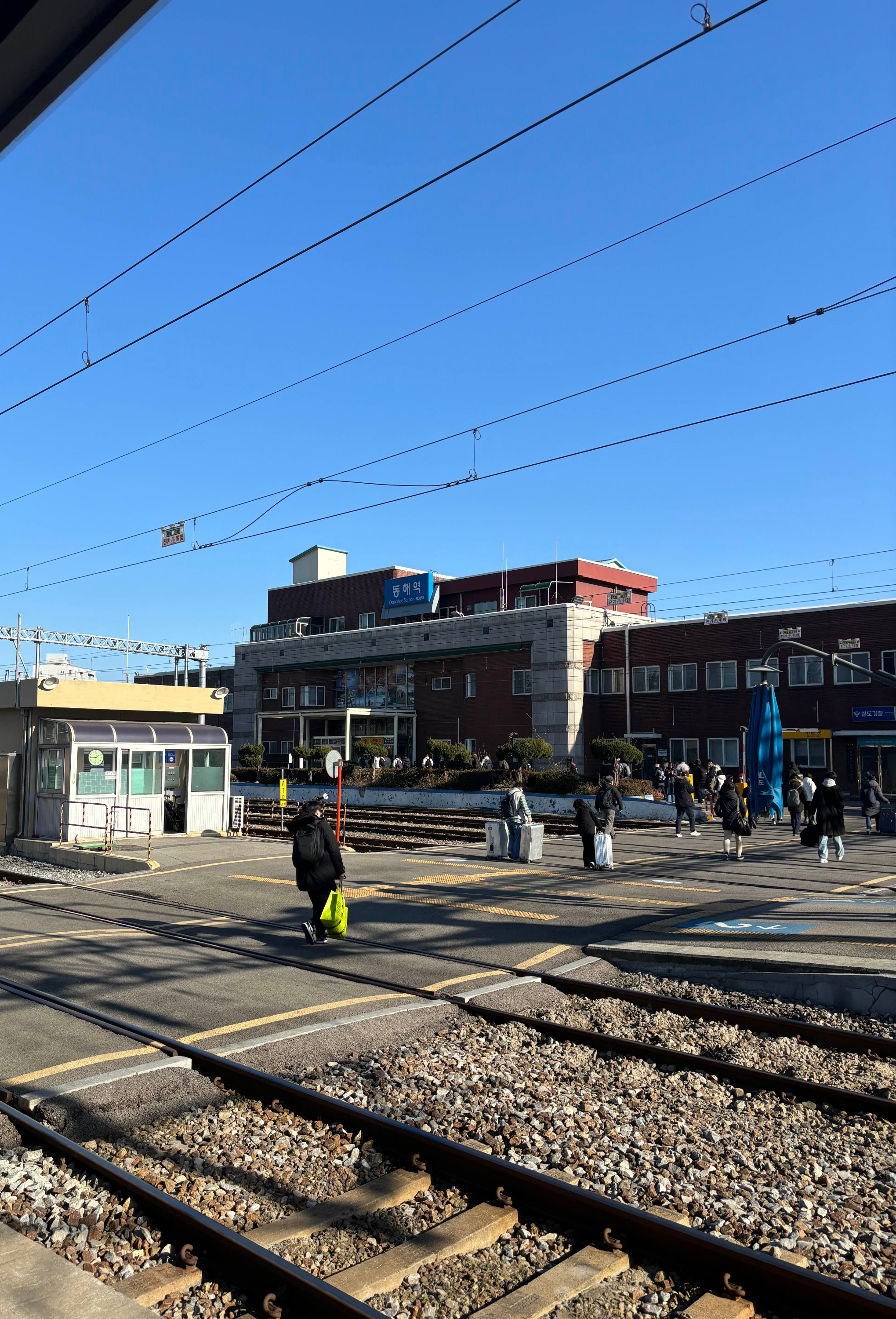 - 묵호역을 지나 동해역 도착! 작고 귀여운 역이다! 타고 내릴 때 건물을 올라갔다 내려갔다 하지 않고 평지로 다닐 수 있어서 짐이 많아도, 몸이 불편해도 OK! 다음번에 동해에 올 때는 묵호역 도착으로 해도 될 거 같다. 한섬 해수욕장 근처로 숙소를 잡는 것은 비슷할 거 같아서...!
