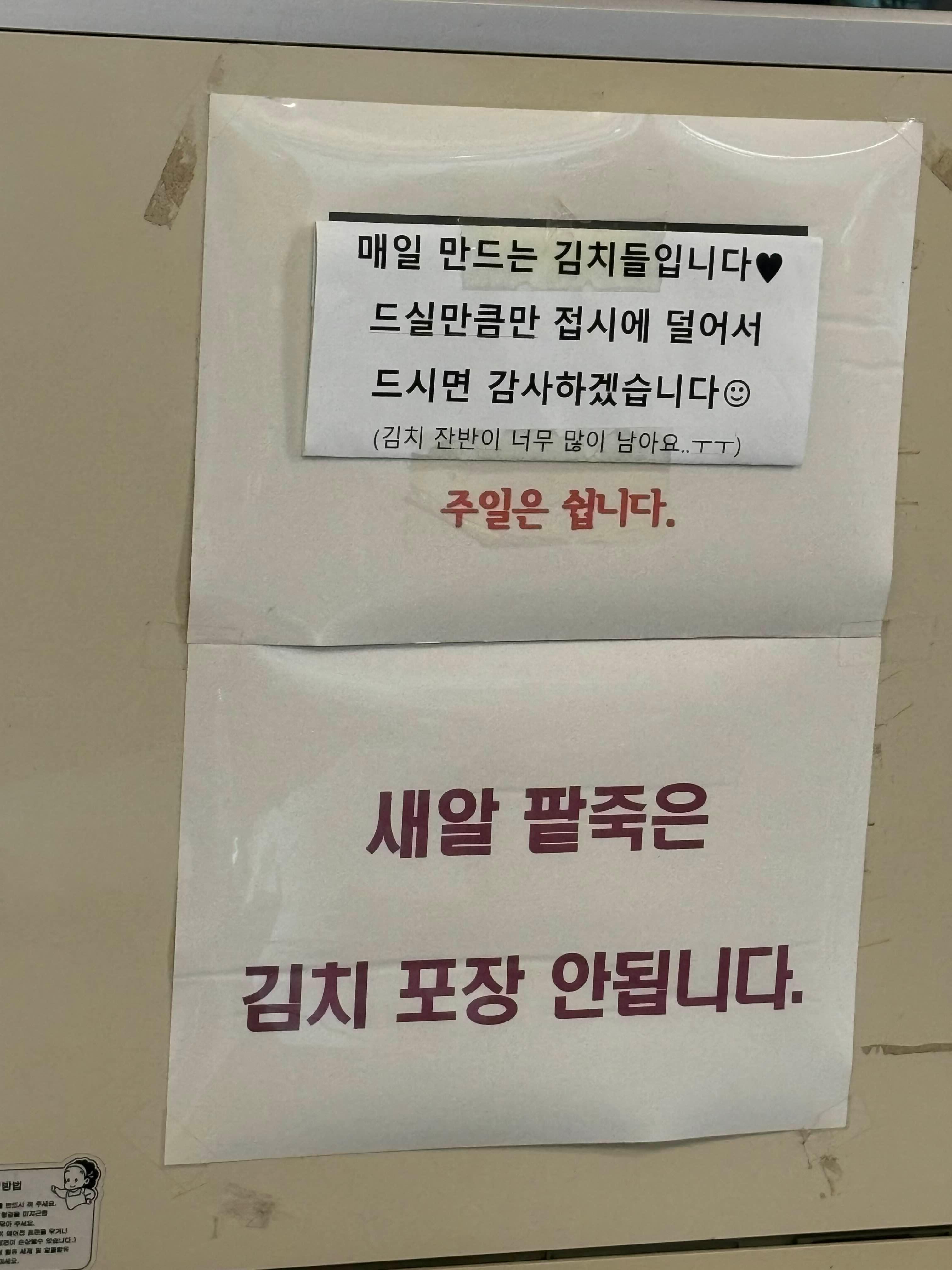 매일 아침 새로운 김치를 만드는 만큼 먹을 만큼만 덜어먹기! 어딜 가도 늘 실천하려고 하는 것이다.
