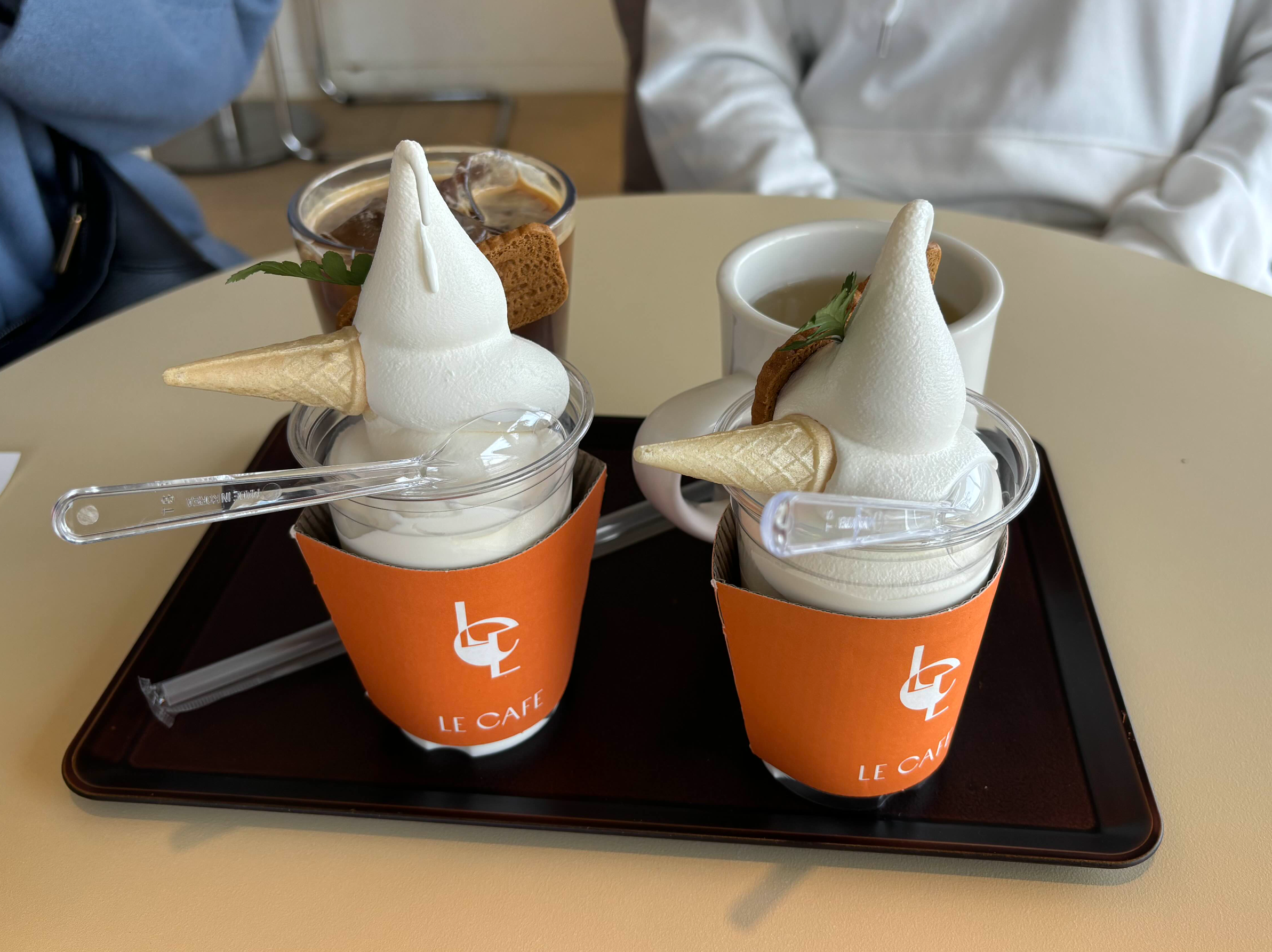 상하목장 아이스크림이 있어서 아이스크림이랑 유자차, 아이스라테를 시켰다.