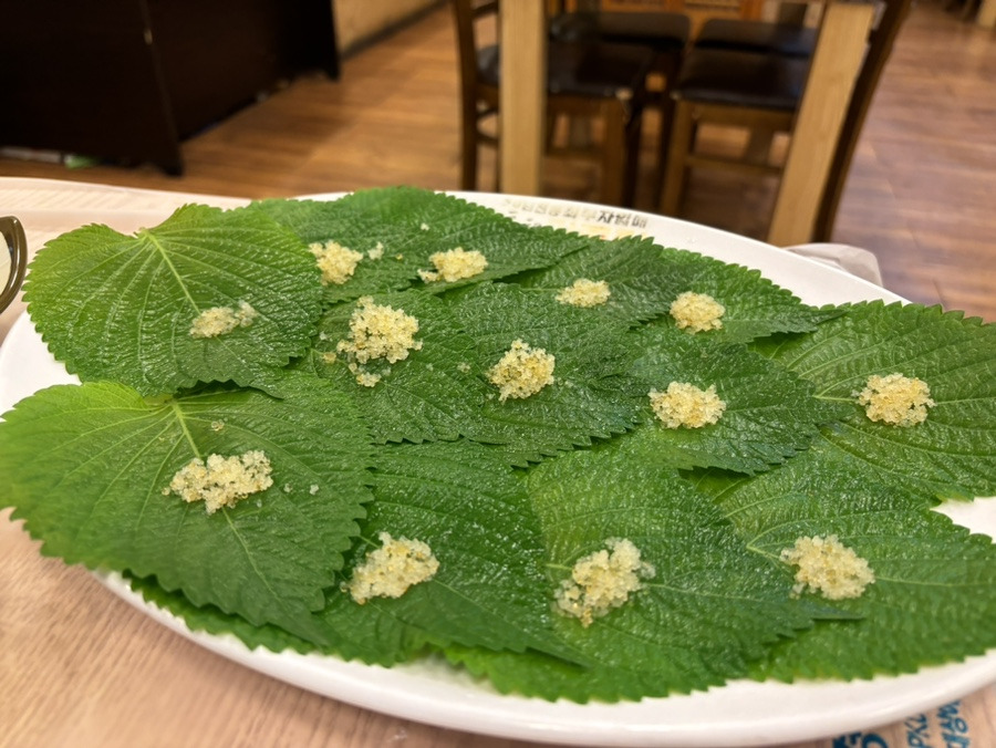 날치알이 올라간 깻잎을 엄청 넉넉하게 주시는데, 필요하면 더 주신다고 한다. 이따 나올 우럭회무침을 싸 먹으면 별미다.