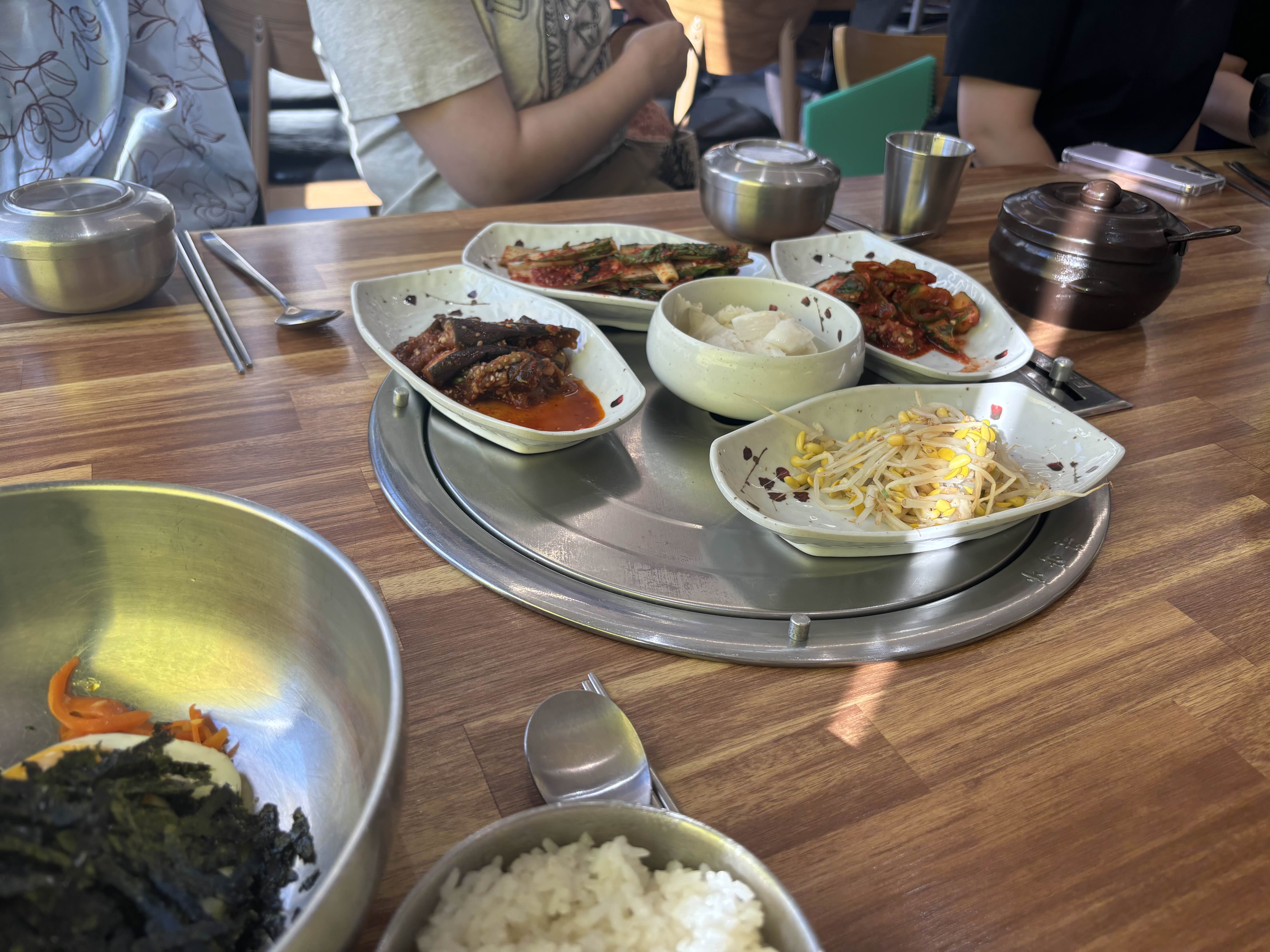 밑반찬으로 오이소박이랑 백김치(판매중) 가지나물, 콩나물 주시는데 반찬이 정말 맛있다. 반찬 비면 사장님이 막 더 주신다.