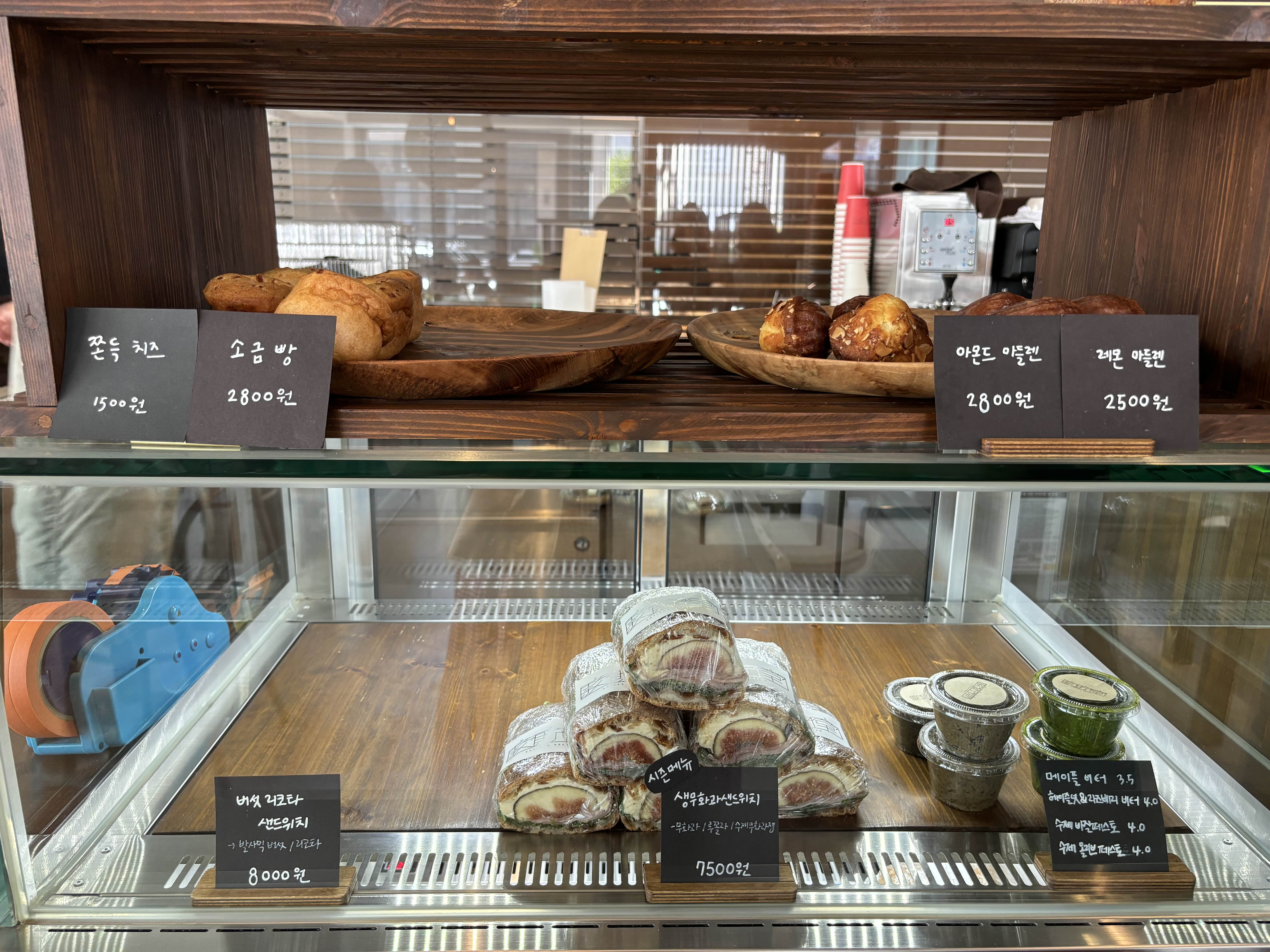 점심시간인 12시 40분쯤 갔는데 식사하시는 분들 많았음. 그래도 자리가 한 자리 정돈 있다. 샌드위치 종류 많은데, 점심만 되도 많이 빠지고 2-3시 쯤에는 고를 수 있는 종류가 많이 없음.