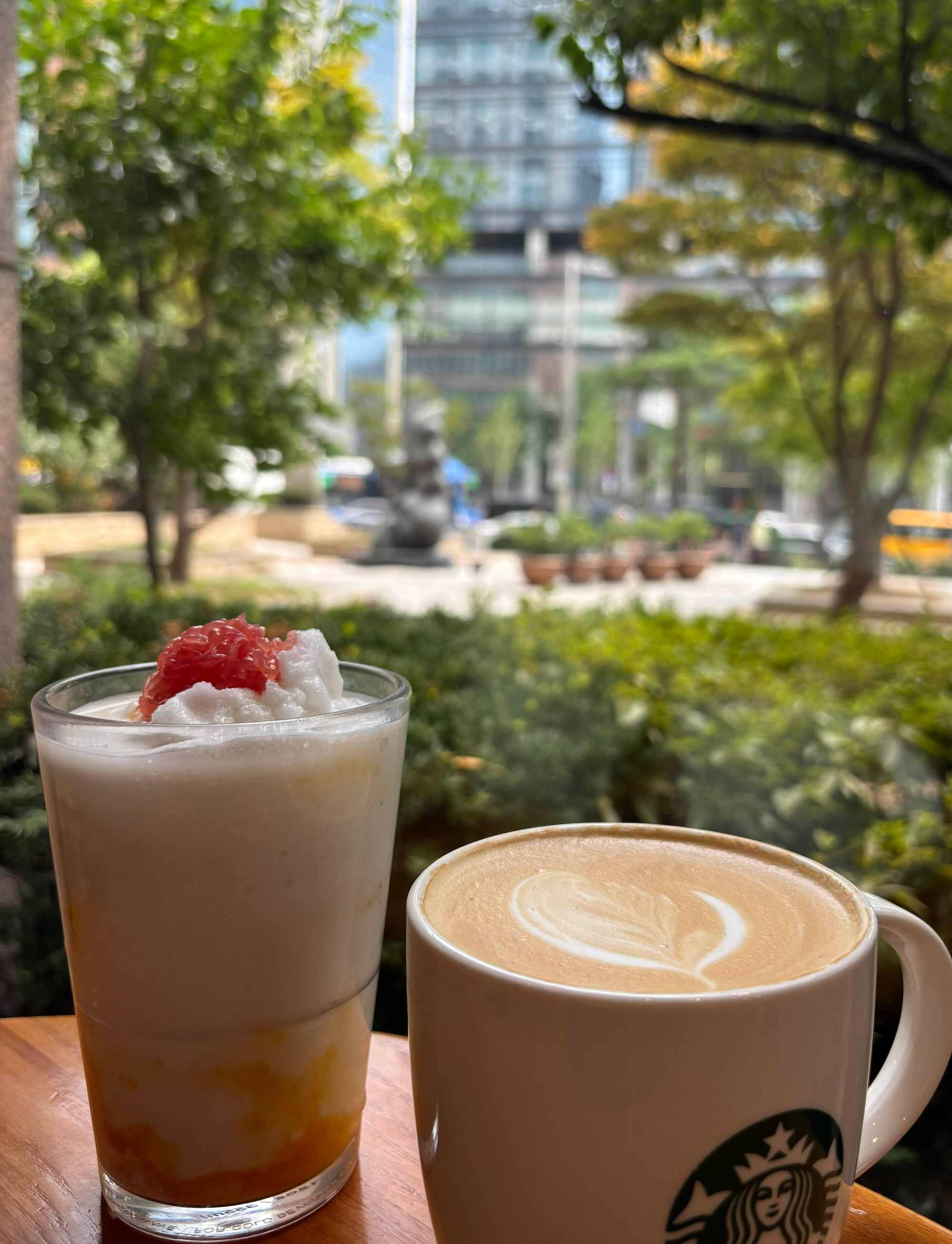 자몽망고코코프라푸치노 하나, 따뜻한 카페라테에 샷추가해서 주문했다. 프라푸치노는 망고랑 자몽, 코코넛 조합이 괜찮았다. 클래식 시럽을 아주 빼버렸는데 적당히 달아서 좋았다. 요즘 프라푸치노에 웬만하면 시럽은 빼버린다. 그래도 달고 시원하고 맛있음. 아! 얼음도 적게 해야 먹기 더 편하다.