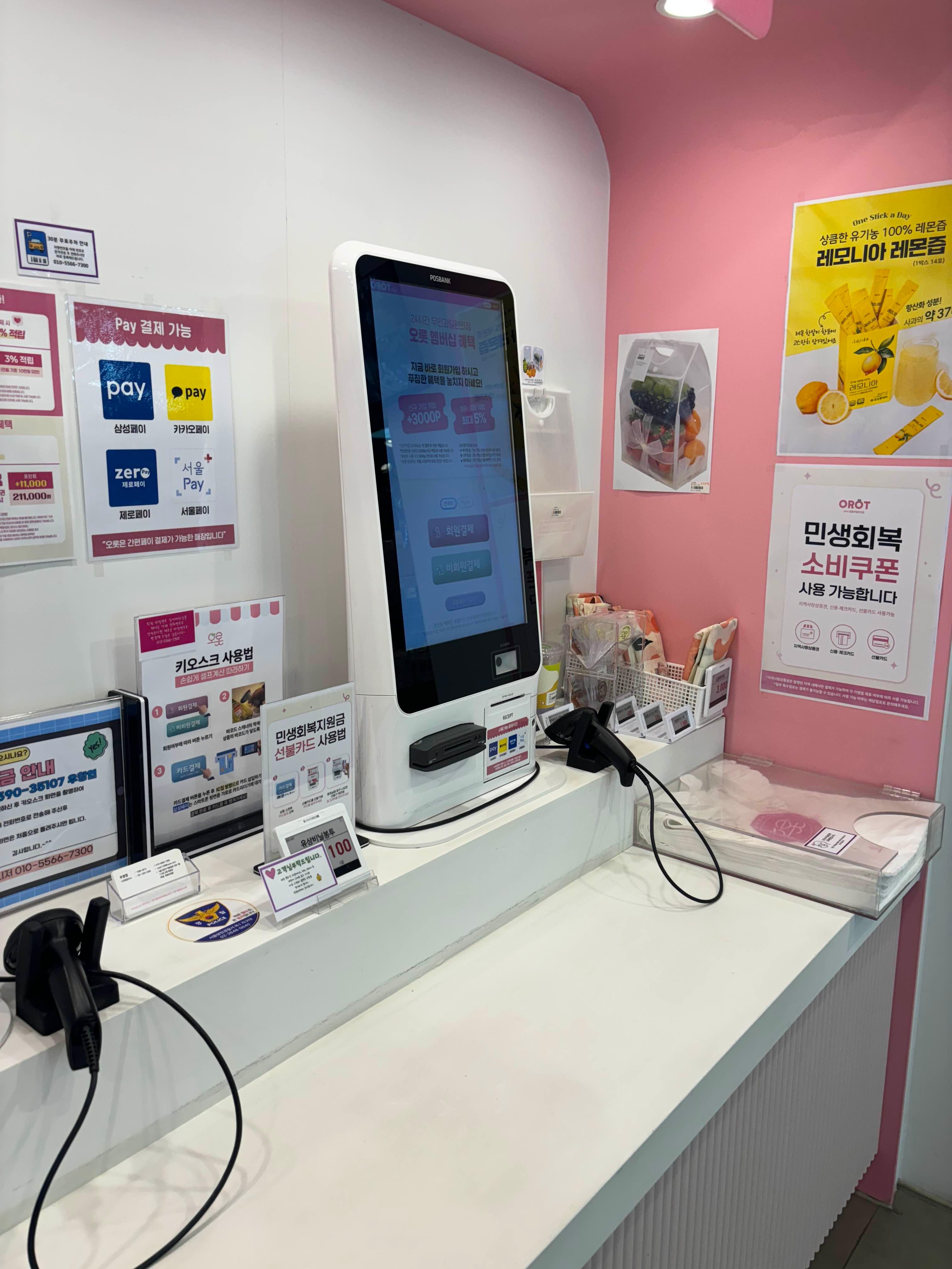 지역사랑상품권, 민생회복소비쿠폰도 되길래 간단히 과일 사가려고 한다. 키오스크로 셀프 계산해서 가져가면 됨!