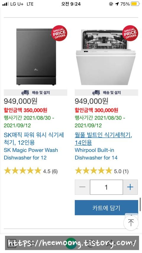 월풀 빌트인 식기세척기 14인용