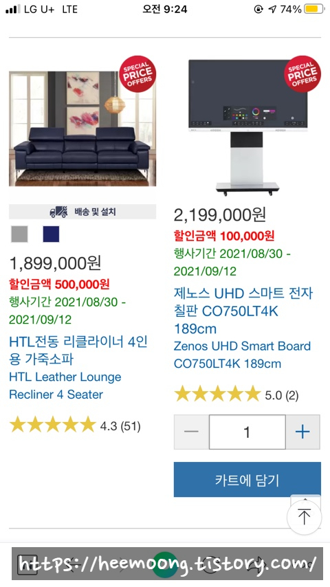 코스트코 HTL 4인용 가죽소파 구매후기