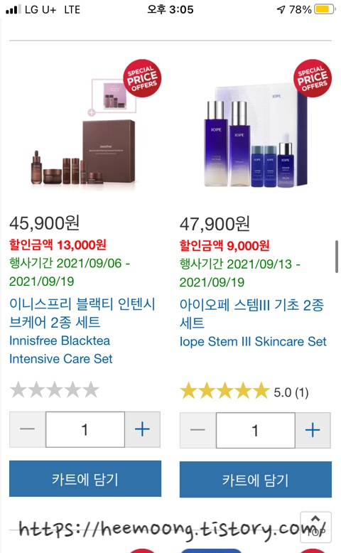 이니스프리 블랙티 인텐시브케어 2종 세트