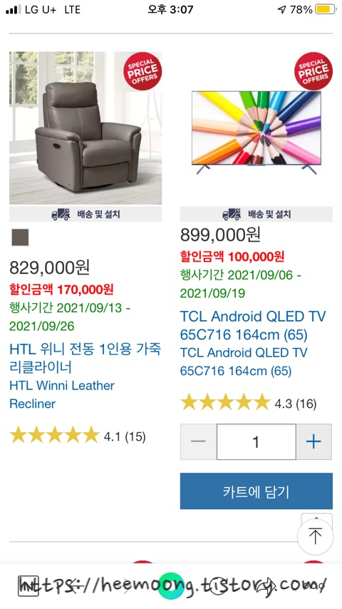 코스트코 온라인몰 / HTL 가죽 리클라이너 4인용 구매 후기