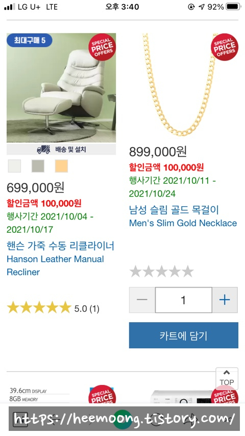 코스트코 온라인몰 / HTL 가죽 리클라이너 4인용 구매 후기