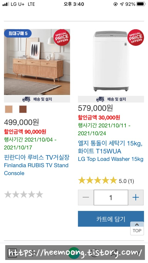 엘지 통돌이 세탁기 15KG